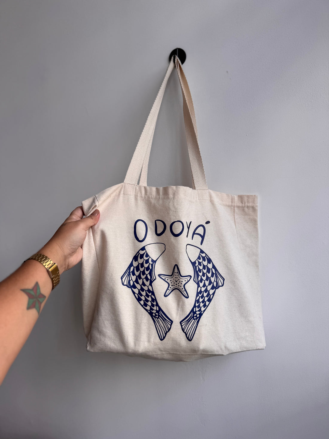 Ecobag Algodão Cru com estampa desenhada pela artista Mayara Caldeira.
