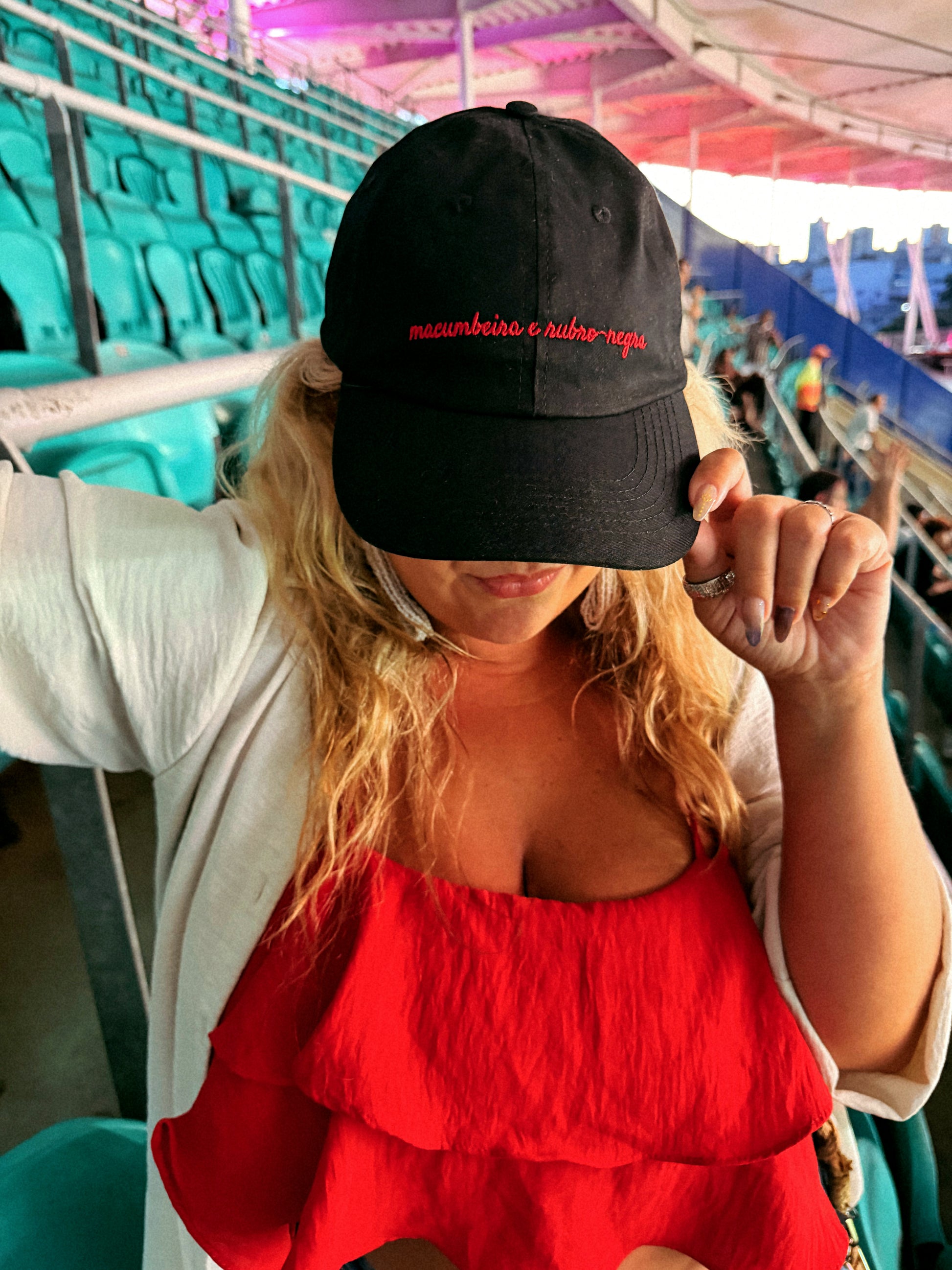 Boné bordado feito 100% de algodão, com regulagem traseira e marca bordada. Modelo dad hat. Tamanho único